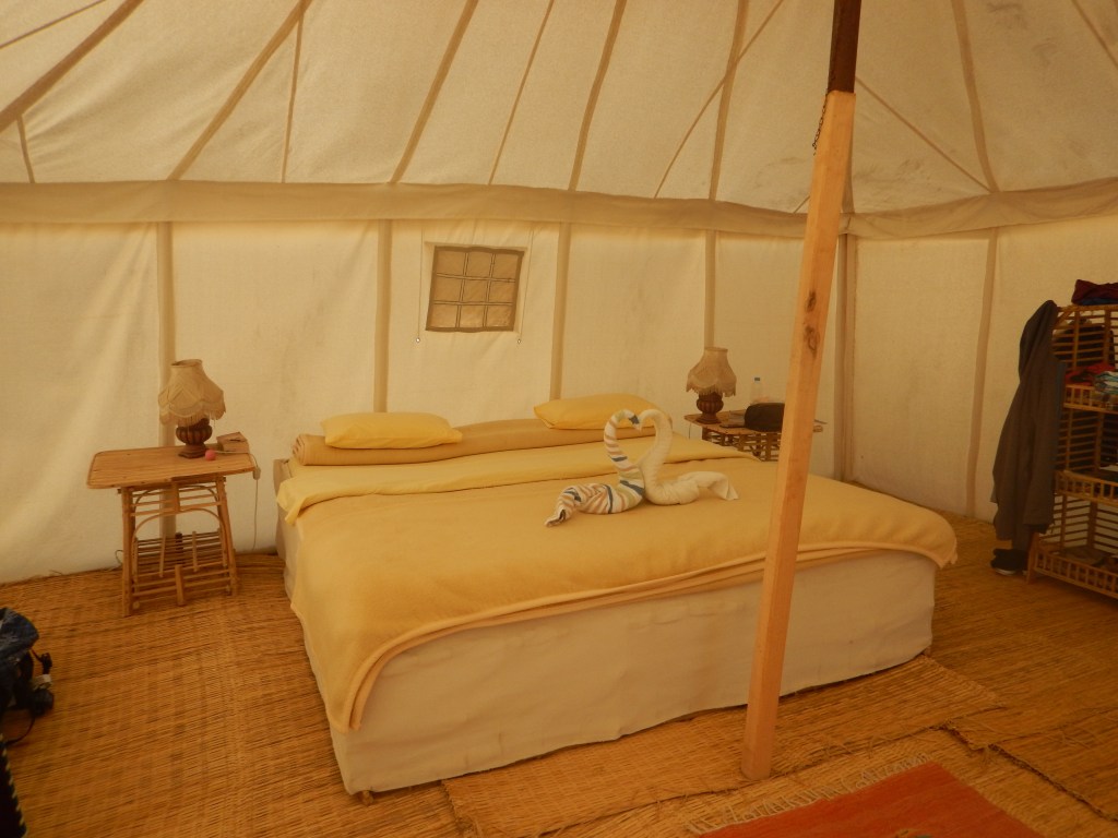 There are two types, regular and royal. We opted for the royal tent, and completely lucked out because ours was front row on the Red Sea! They did have electricity so we had 2 small lamps and a mini-fridge. Most importantly, the royal tent came with bean bag chairs.