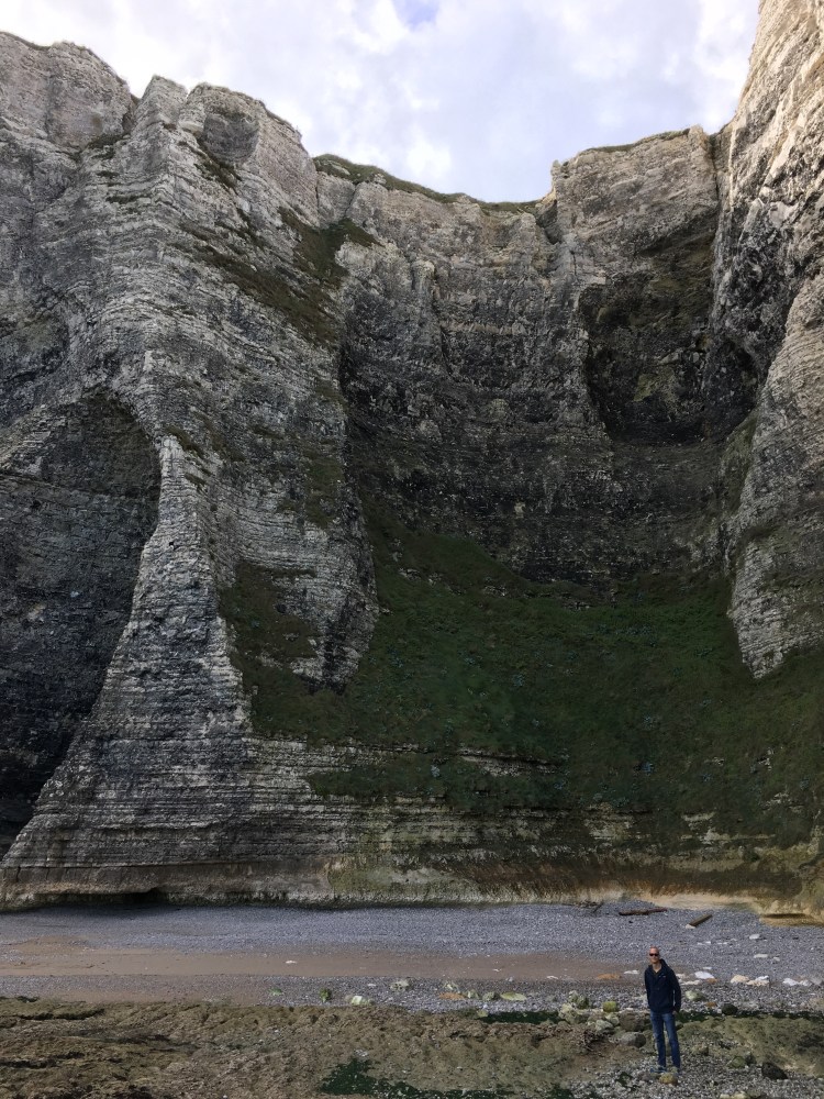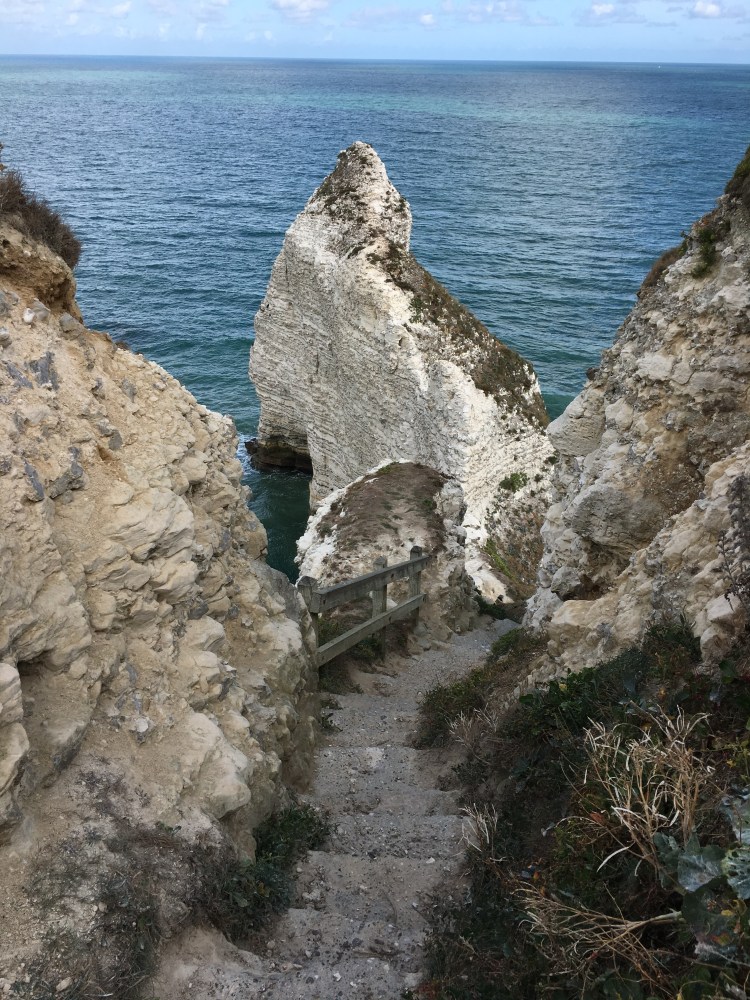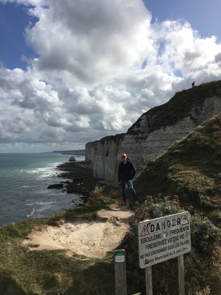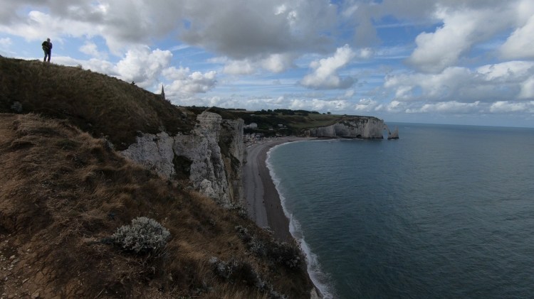 Similar to Fécamp, there is a boardwalk on the beach which allows direct access to paths up the cliffs on either side. We arrived early enough to enjoy a coffee on the beach, then head up the cliffs. We started to the right of the beach, if you’re facing the English Channel.