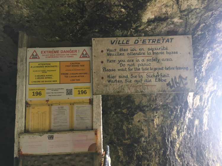If you’re facing the English Channel and turn left, you will walk towards two natural arches (Porte d’Aval and The Manneporte) and L’Aiguille (The Needle), a 70m tall pointed chalk formation. Similar to heading right, you can walk up a clearly marked path to the top for what I can assume are some spectacular views. Unfortunately for us (or maybe fortunately?) there was a triathlon taking place which used the path so it was blocked off. No worries though, the tide was low and I read online that you could walk THROUGH the arch at low tide!