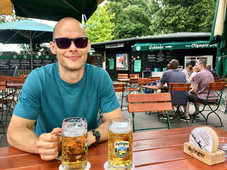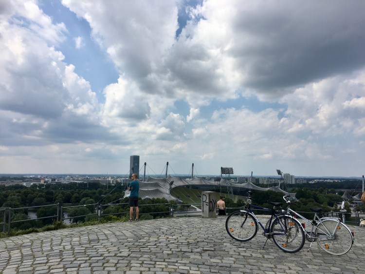 Interesting fact: the Olympiaberg (Olympic mountain) is man-made. It’s actually built from the rubble created from the bombings during World War II. Now, at 56m (183ft) tall, it’s one of the highest points in Munich. 56m doesn’t sound that bad until you bike it, which we did. The view was worth it, though.