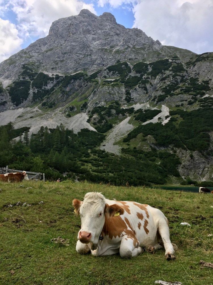 An unexpected bonus? COWS! Free-range cows with giant bells! Apparently this is a ‘thing’ in the Alps. Sheep & cows are put out to graze wearing bells so their owners can find them again later. Too bad for you if you’re a sleepy cow – in this area, the bells were constantly ringing. For a while, you could only hear them, but we did eventually get close enough for a cow-photoshoot. They obviously see humans all the time because they didn’t give two shits about us.