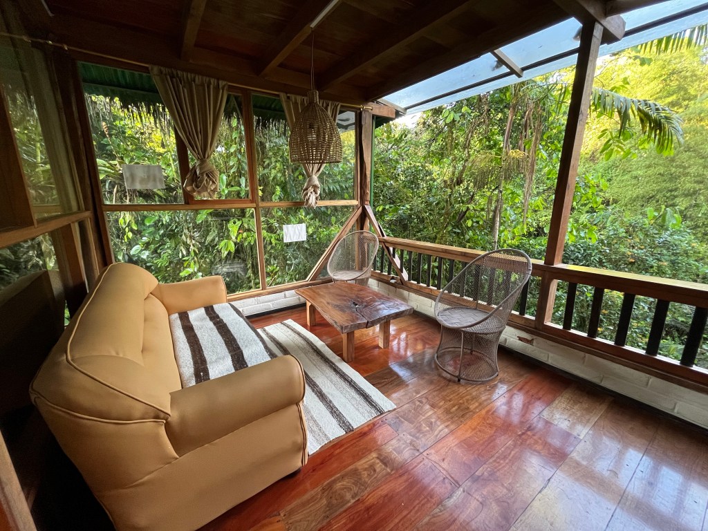 Beyond the birds, the hotel itself is beautiful. Fernando has made the rooms feel really welcoming, and John, the chef, made some delicious meals. Meals that I wish I could have eaten more of. Remember how I said I think I got some altitude sickness after going to Quilotoa? Unfortunately, that hit my little tummy full force on our first day in Mindo. So, I wasn’t up to my full eating capacity. However, I can confirm that the bathrooms are nice! 🤦♀️😩